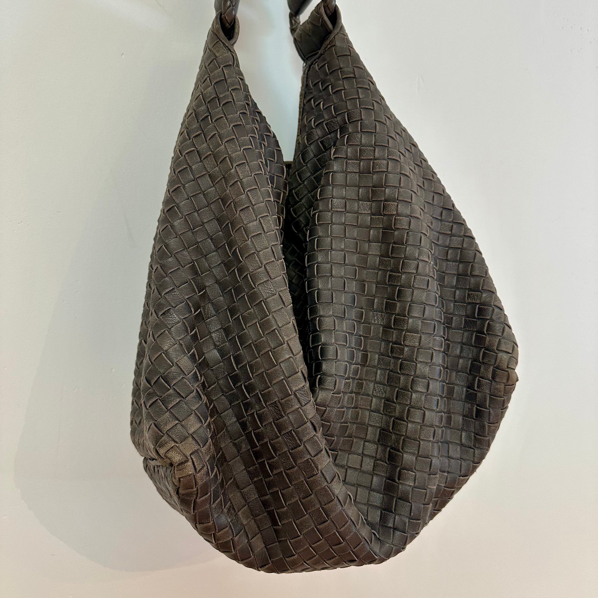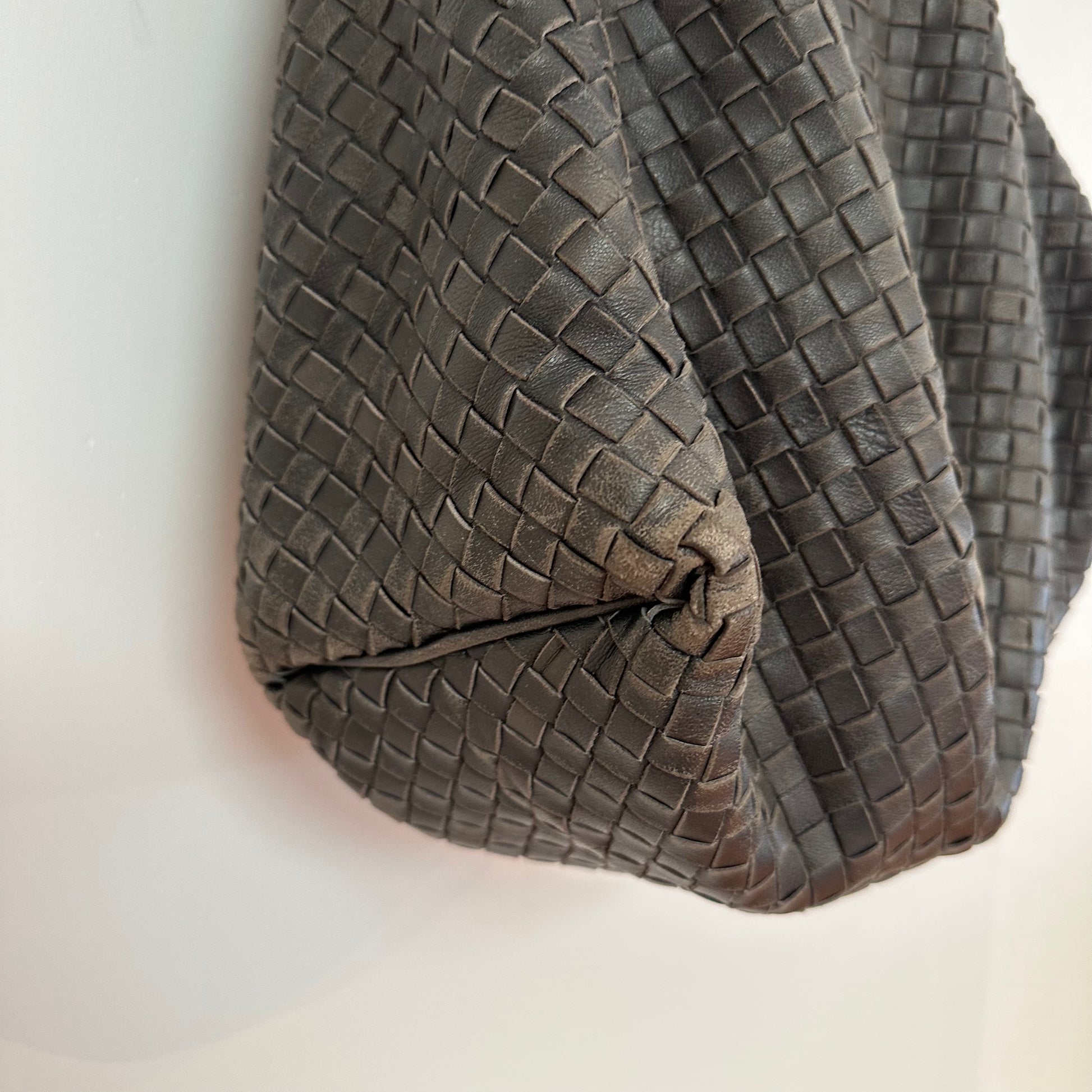 Vintage Bottega Veneta Intrecciato Sloane Hobo, in faded grey. Interior zip pocket.