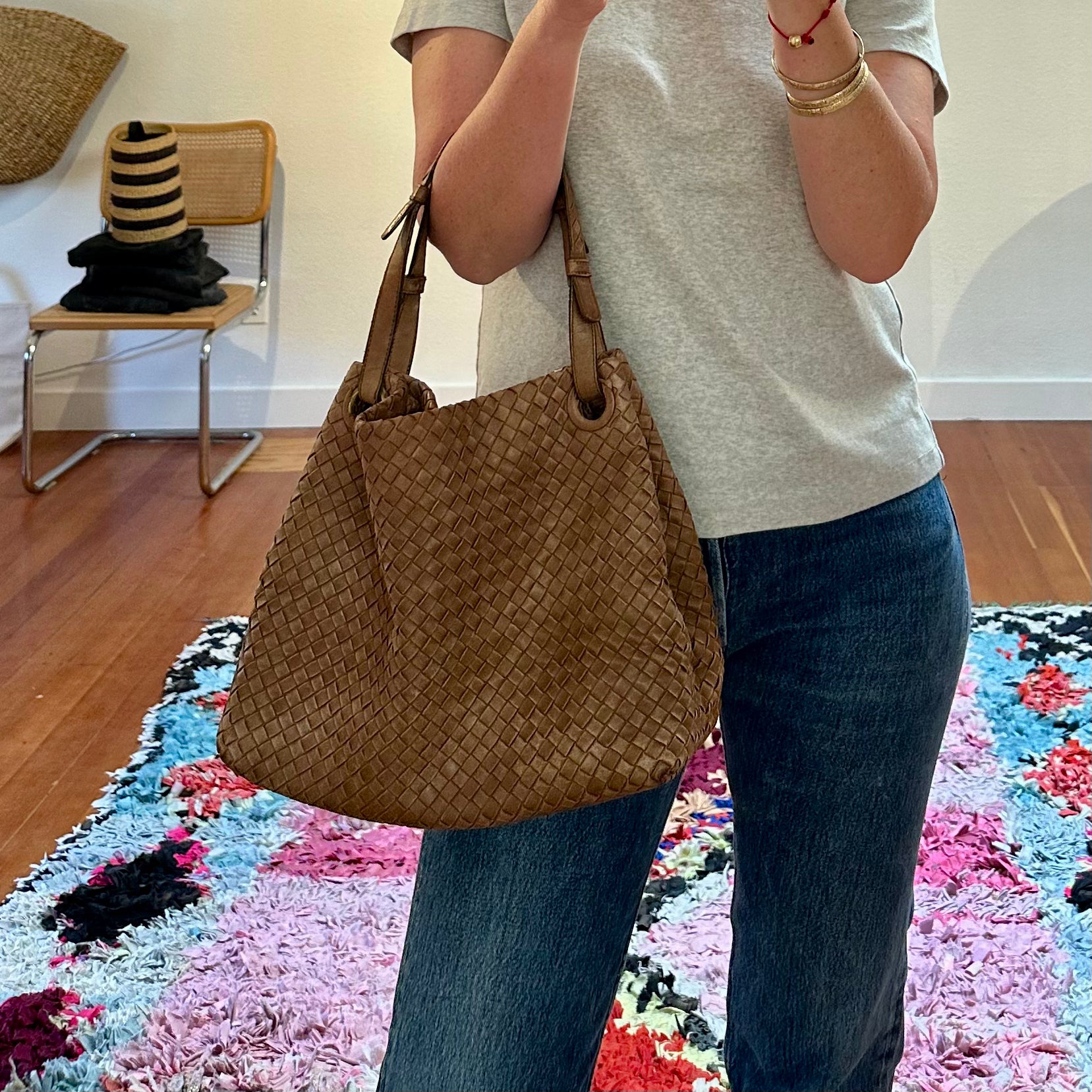 Vintage Bottega Veneta Intrecciato bag in beautiful faded brown. Interior zip pocket.