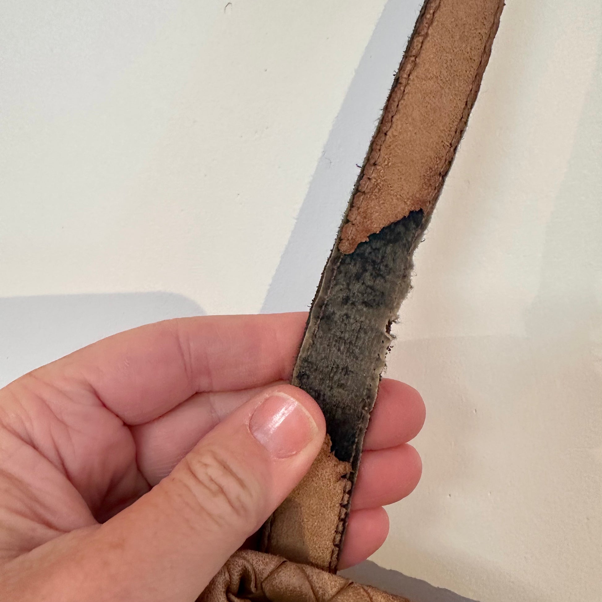 Fair vintage condition. Interior is clean. Discoloration at exterior, wear at strap, but not visible when carrying the bag. Tons of life left!