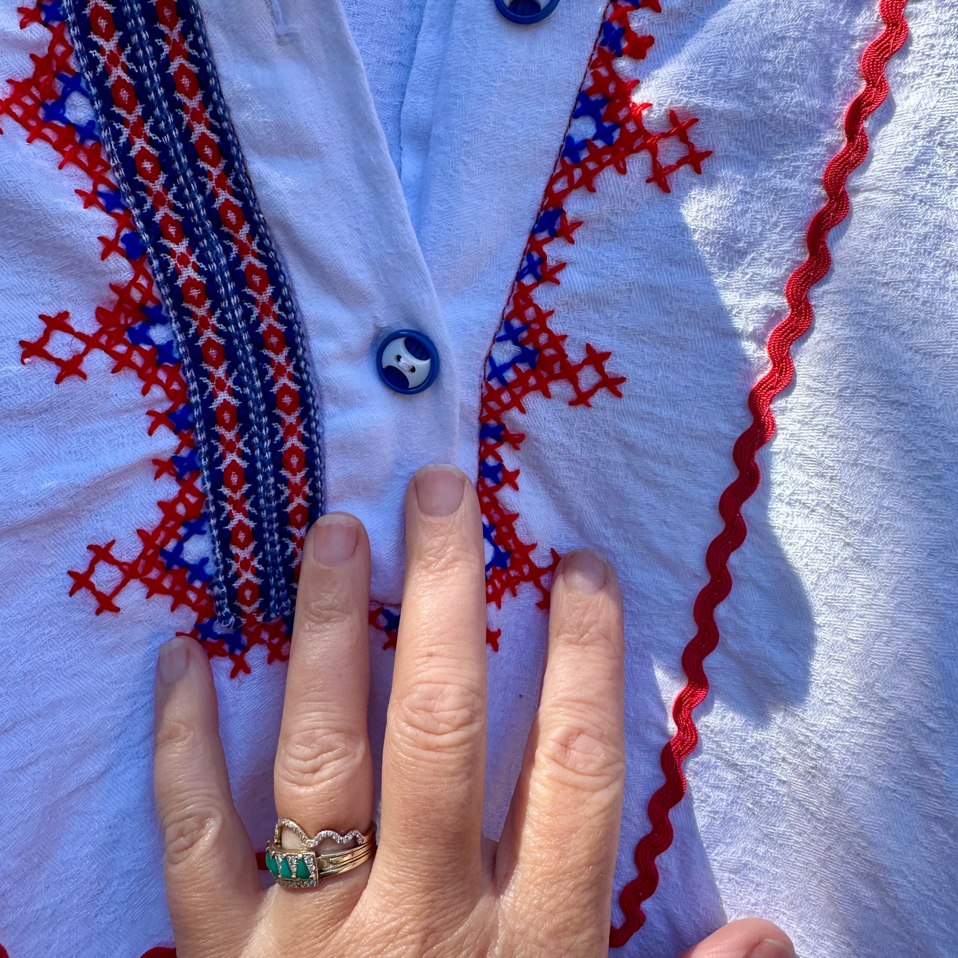 Vintage embroidered tunic with the best buttons. No tag, feels like 100 cotton.